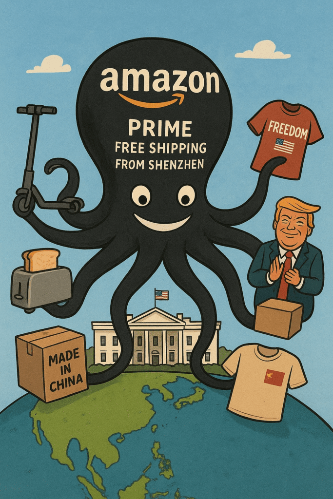 Pendant ce temps, Amazon — ce temple moderne du consumérisme décomplexé — devient l’autoroute transpacifique la plus fréquentée du monde. On y croise des millions de produits, expédiés directement depuis l’empire du Milieu, pendant que Washington joue à “Qui veut taxer les pandas ?”