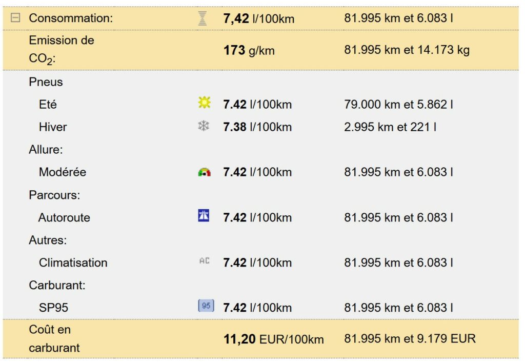 Pour voir la consommation du TIGUAN II en détail, depuis son achat jusqu’au 14 sept 2025, cliquez -> https://www.spritmonitor.de/fr/detail/840828.html?cdetail=1