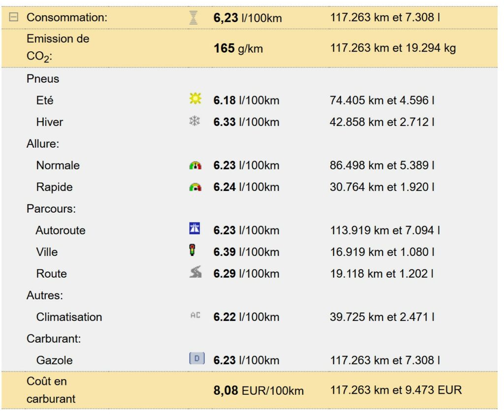 Résumé de la consommation de toute une vie 😉(Diesel)